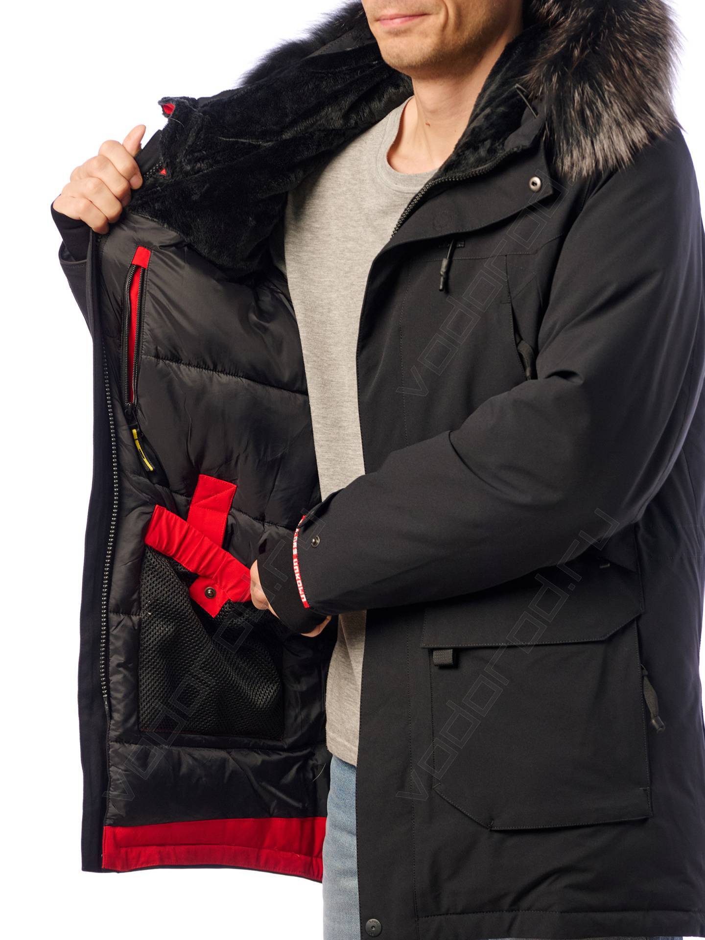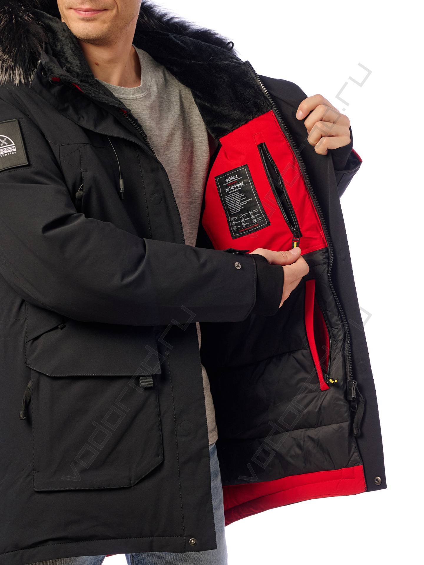 Зимняя куртка имеет множество функциональных карманов: да нагрудных кармана на молнии, два врезных боковых кармана на молнии, три внутренних кармана, на рукаве функциональный карман.